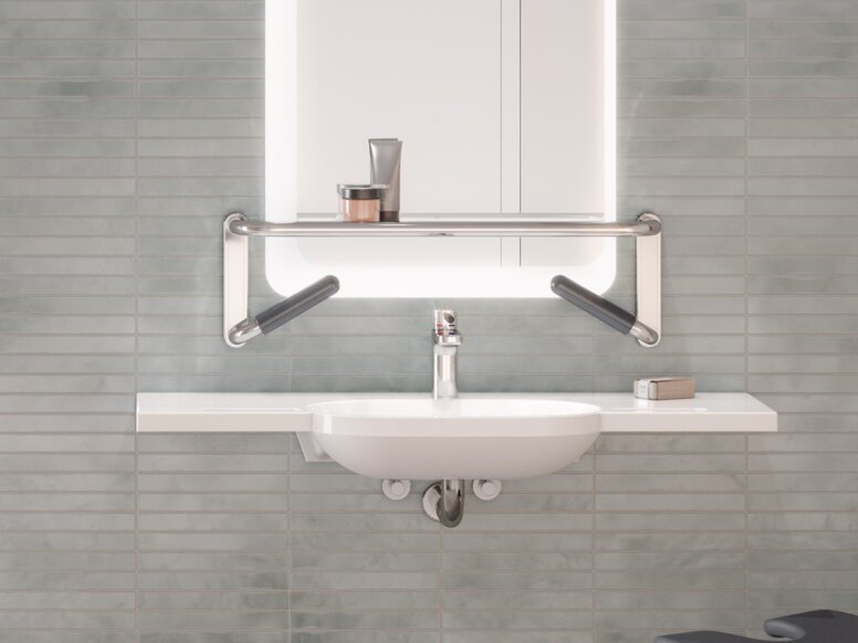 • Von Waschtisch über Accessoires bis hin zu Armaturen, Stützklappgriffen und -sitzen