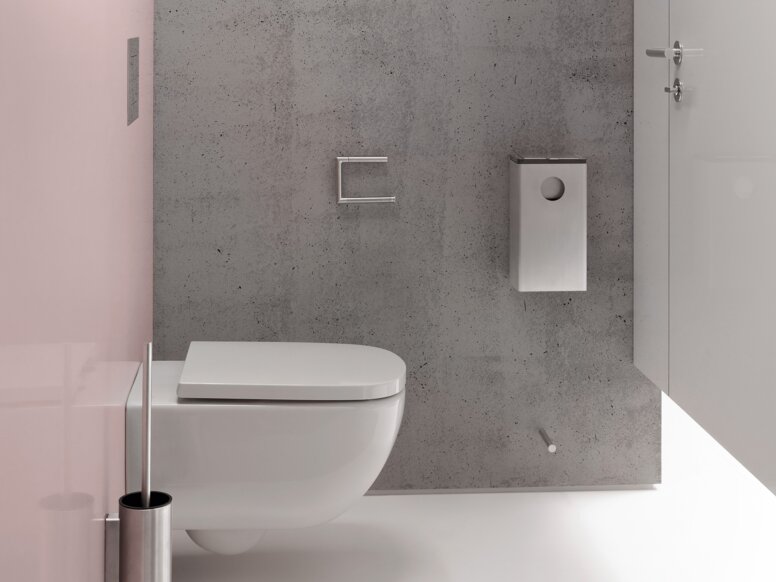 System 162 was designed for use in public areas. The materials stainless steel and polyamide are characterised by extreme robustness and are therefore particularly suitable for the highly frequented sanitary room. Stainless steel offers several advantages: It is hygienic. In addition, the stainless steel used is rust-free and above all easy to clean.