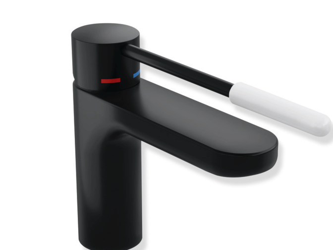 - Barrier-free fittings with extended operating lever: Fittings that have an extended operating lever make use noticeably easier. This is particularly beneficial for wheelchair users who have to reach the fittings from a sitting position. The HEWI models are equipped with a coloured control element made of polyamide, which promotes intuitive use, enables easy handling, can be operated with little effort and is noticeable to touch.