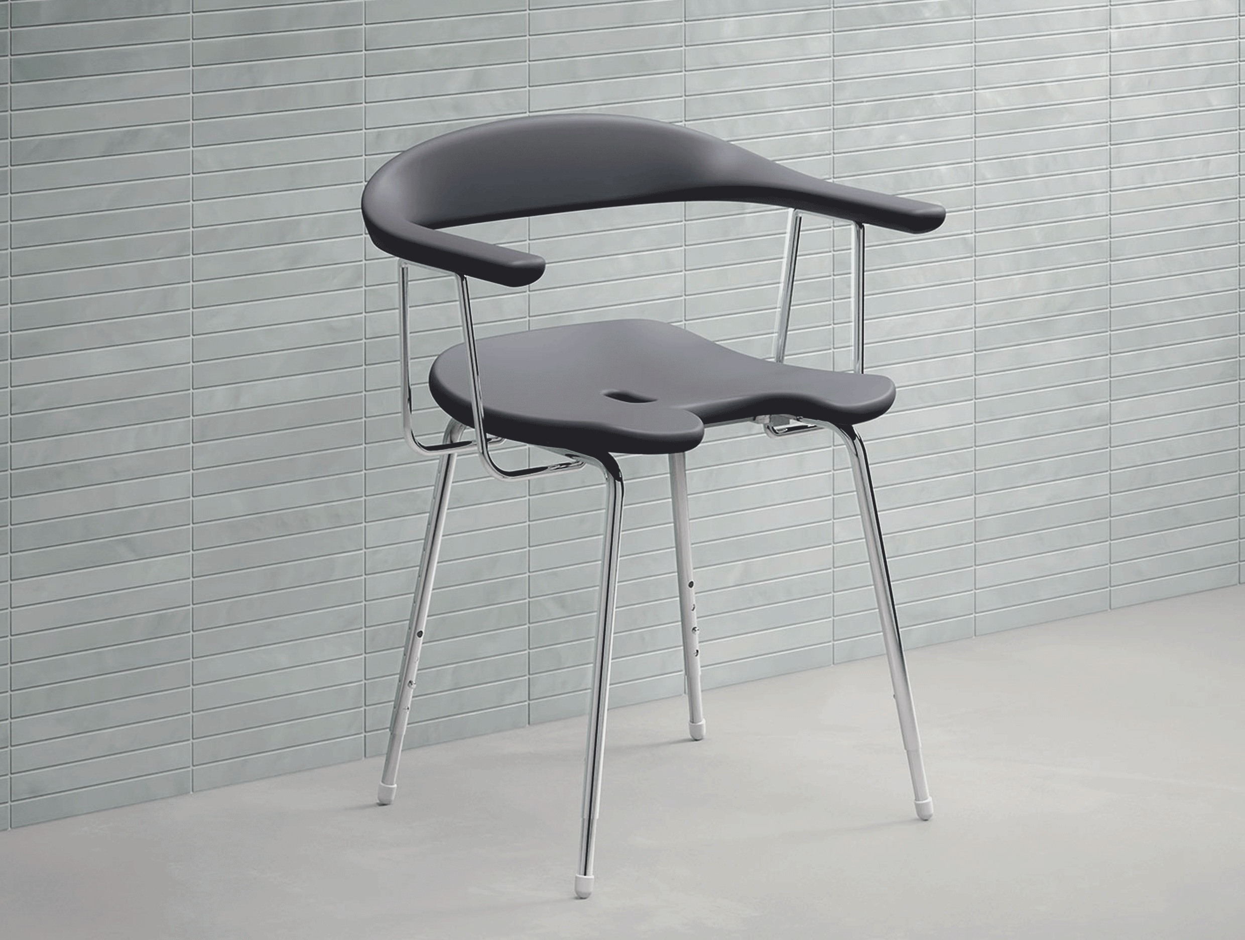 The well-thought-out product details of LifeSystem offer both comfortable and safe use. Together, the products create an intelligent system that supports the user and also the care personnel. LifeSystem can be combined with HEWI's WARM TOUCH bar system. This allows the hanging seats to be easily attached to the handrails and grab rails. WARM TOUCH combines the visual properties of high-gloss chrome surfaces with the haptic properties of polyamide. The products feel pleasantly warm and thus contribute to a sense of well-being. These properties make HEWI WARM TOUCH particularly suitable for patients with increased sensitivity to cold, as is the case with rheumatic diseases, for example.
